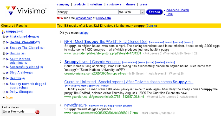 Vivisimo quickly gained traction with both government agencies and private enterprises: